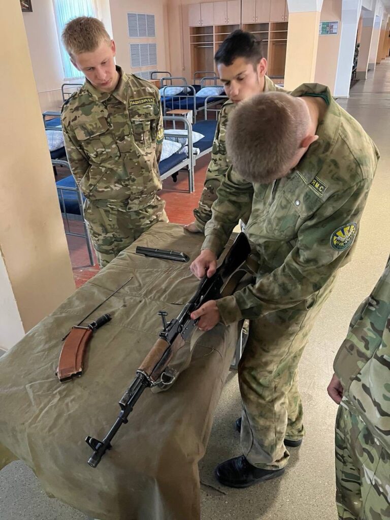 Будущие защитники познакомились с реалиями службы и бытом солдат срочной службы, под руководством военнослужащих учились разбирать и собирать автомат, с интересом примеряли военную экипировку и средства защиты, в том числе водолазную амуницию.